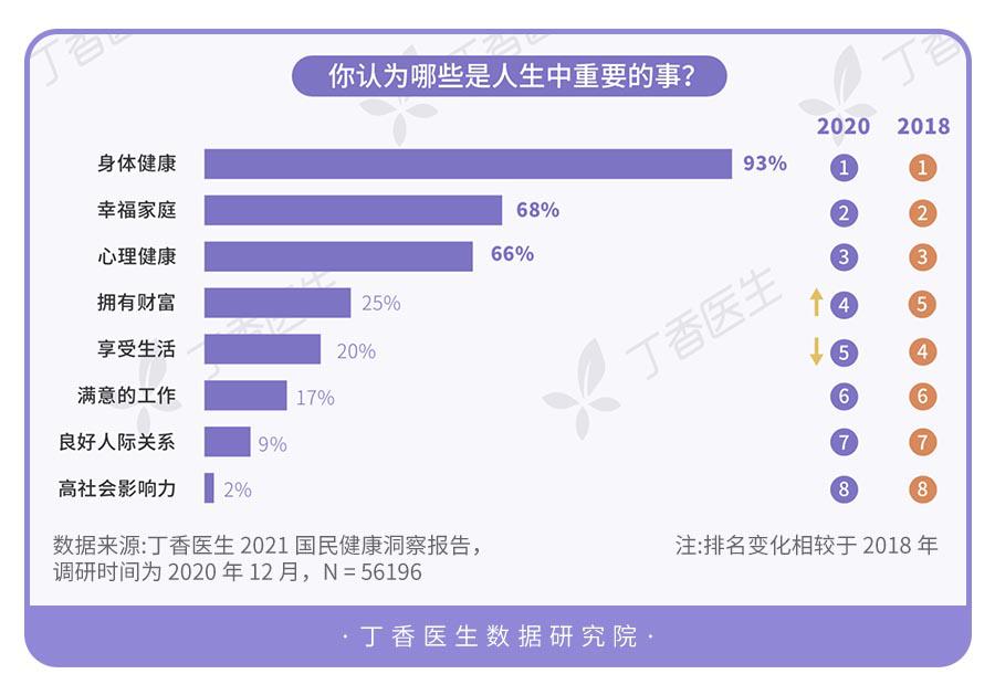 丁香医生发布《2021国民健康洞察报告》,“身体健康”成人生头等大事