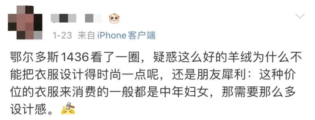 好在鄂尔多斯针对不同消费群体开设了五条品牌线,分别是 “1436”、“ERDOS”、“鄂尔多斯 1980”、“BLUE ERDOS”和“erdos KIDS”,听着就犯晕,但说白了,钱才是决定你去哪里消费的关键因素。