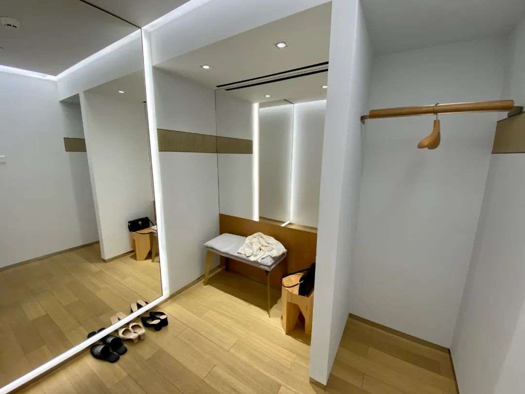 当我推开试衣间的门,好家伙,衣架、落地镜、沙发凳应有尽有,甚至和我自个家的房间差不多大。