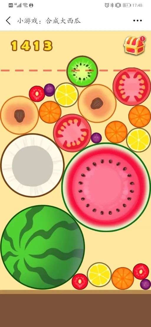 值此过年前无心干活的特殊时期,玩法简单的H5小游戏《合成大西瓜》一夜爆红,到处都有人晒出自己三更半夜不睡觉,一心合成大西瓜的战果。