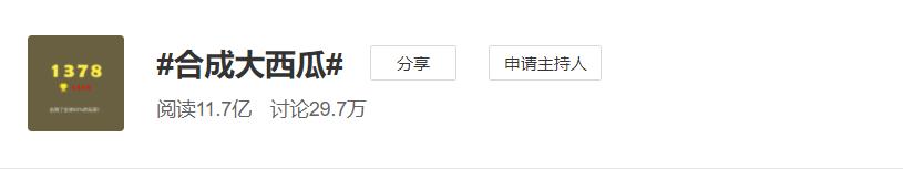 这款小游戏于1月22日上线,截至1月28日,#合成大西瓜#微博话题目前累计阅读数11.7亿,讨论29.7万。开年现象级游戏,非大西瓜莫属。