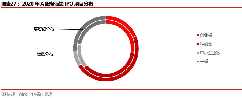 目前来看,新经济是私募股权投资市场主要的投资方向,A股市场拥抱新经济成分是一个长期趋势,为私募股权投资市场打开了A股IPO的退出通道。2019年科创板的落地带动了A股IPO项目数量和募资额的快速提升,2020年创业板注册制的正式实施,也让IPO市场呈现了小爆发的状态。Wind数据显示,2020年,A股市场IPO的企业数量达396家,同比增长95%;募资总额达725亿美元,同比增长86%;其中,在科创板和创业板IPO的项目数量和募资额占比均达60%以上。未来我国将全面推行注册制,IPO市场有望继续保持增长趋势。