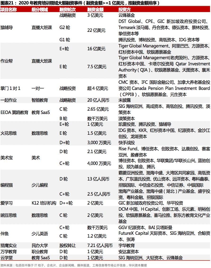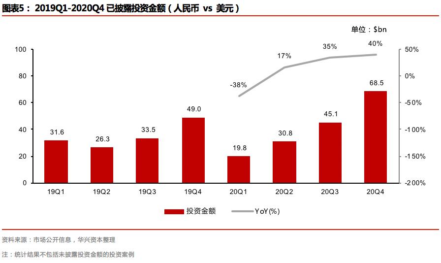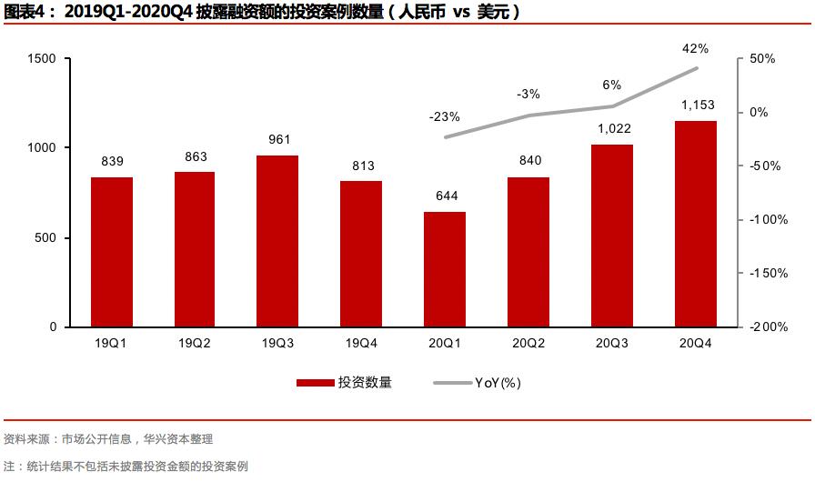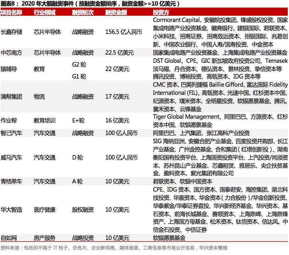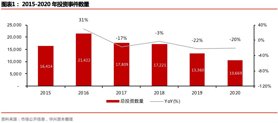 数据源补充说明:1.本文投资部分数据源为IT桔子和企名片,由华兴资本汇总整理得到,其中,行业分布数据源为企名片;2.募资部分数据源为私募通和投资界,数据摘录时间为2021.1.17;