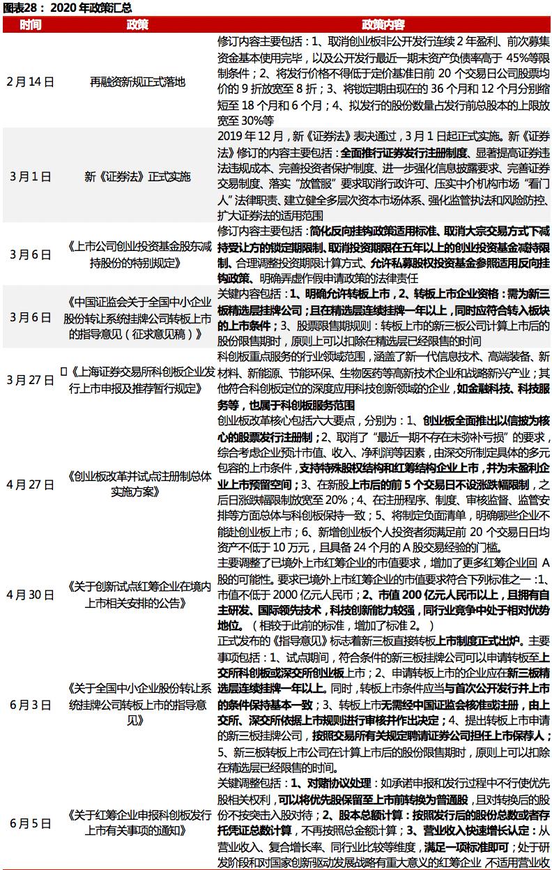 近两年,我国资本市场步入市场化改革快车道,多层次资本市场体系建设不断推进,相关政策接踵而至。2019年,随着科创板的落地开板、《证券法》的重新修订,我国资本市场改革打开了新的局面。2020Q2,创业板注册制改革正式落地,拉开了存量板块改革的序幕,具有标志性意义。