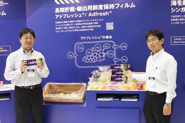 2020年2月,日本三井化学株式会社开发出可长期保持果蔬鲜度的包装用薄膜“AdFresh”。这种保鲜膜可以交换二氧化碳和氧气,维持包装内的氧气量,延长果蔬在包装后的呼吸作用,而防止腐烂。用此种薄膜包装的葡萄,保鲜期长达5个月。