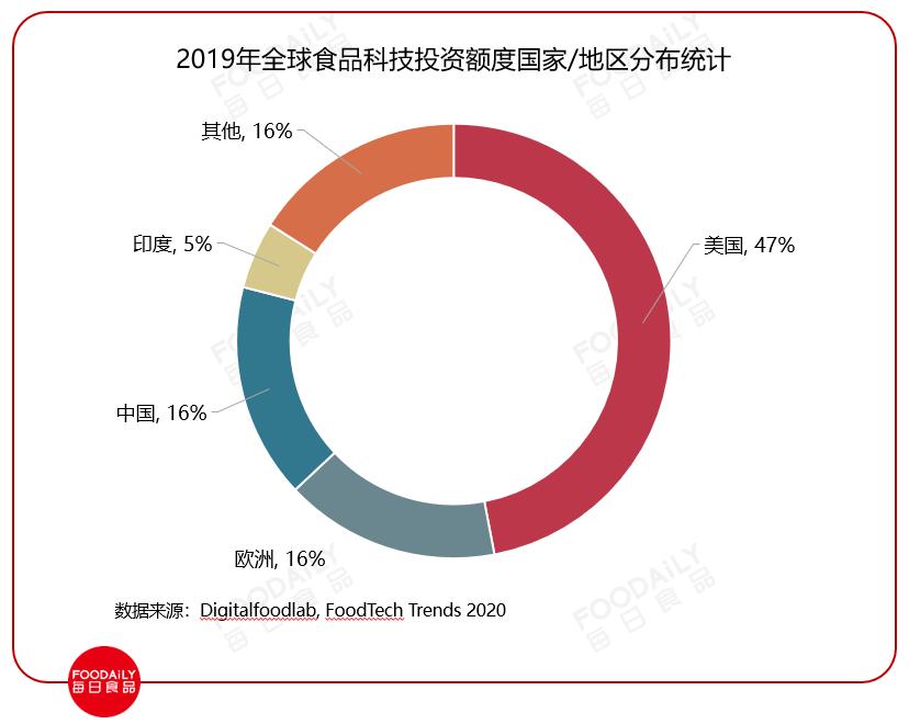 在资金投入上,美国以接近50%的比重傲视全球,欧洲(英、法、荷、德)、中国以16%分列二、三位。Digitalfoodlab特别指出:中国的食品科技投资绝大多数集中于食品零售。开发领域过于单一,将成为制约中国迈向食品技术强国的重要因素。