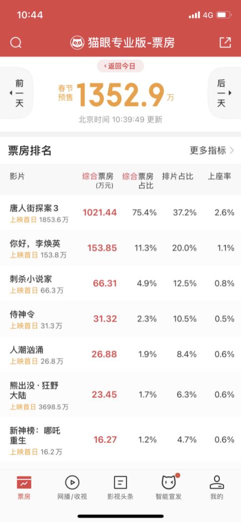 根据猫眼专业版1月29日12:30实时数据整理