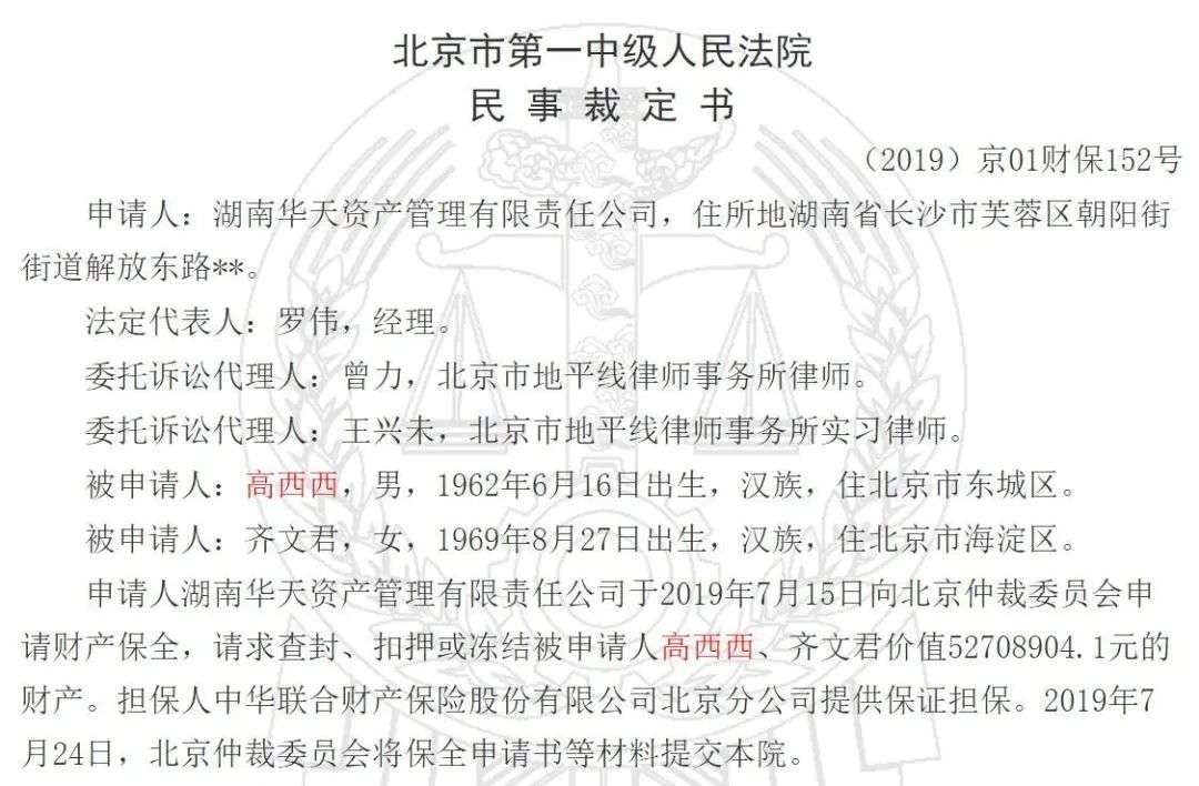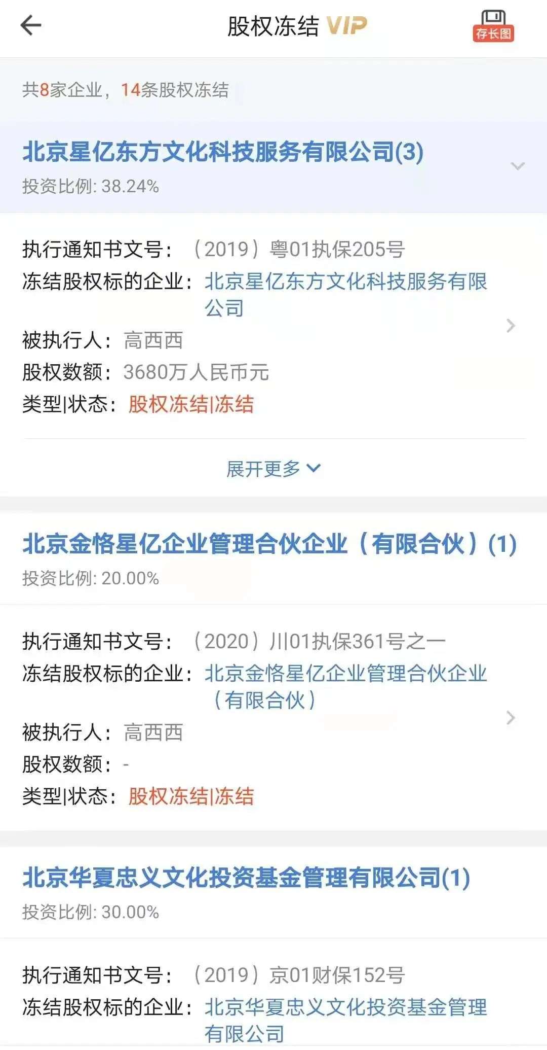 高希希持股10家公司,名下多个公司股权被冻结