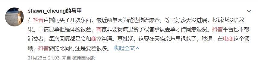 但是,同为流量平台,抖音也需要面临和快手一样的转型阵痛。目前来看,抖音上的购物体验还很一般,商品供应体系的建立并非一夕之功。据了解,抖音目前尚无统一的选品池,直播间外链断掉后,商家直播货源均来自抖音小店,平台对商家选品审核参与有限。