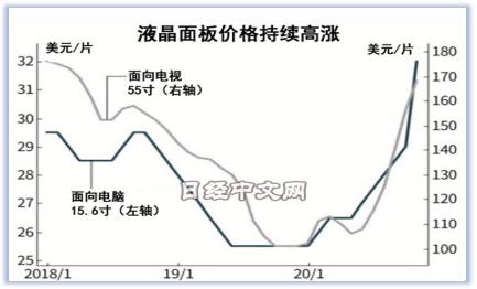 根据研究机构Omdia的数据显示,电视领域最重要的部件显示面板从2020年6月开始就出现供货短缺以及价格上涨。截至2020年四季度,液晶电视面板的平均售价(ASP)尤其是50英寸以下的液晶电视面板,在连续5个月上涨后,上升到2017年四季度的最高水平。而来自招商证券研报的数据显示,截至1月21日,32寸液晶电视面板价格为68美元/片,月环比上涨4.62%;43寸液晶电视面板价格为117美元/片,月环比上涨2.63%;55寸液晶电视面板价格为182美元/片,月环比上涨2.82%。