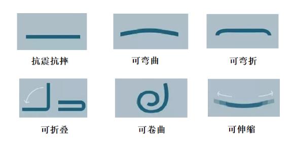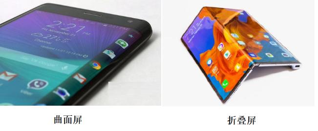 柔性触摸屏在手机中的应用可以从抗摔抗震、可弯曲、可弯折、可折叠、可卷曲、可伸缩等六个维度去考量。目前仅有可弯折的曲面屏和折叠屏应用于上市产品中。2015年三星推出的S6edge是第一款较为成熟的曲面屏产品,此后两侧弧形弯折的曲面屏产品一直存在于市场中。2018年下半年起,手机行业迎来“折叠屏浪潮”,2018年10月柔宇科技发布市面上第一款折叠屏手机“柔派”,2019年三星、华为、摩托罗拉、TCL等手机品牌也纷纷推出旗下的折叠屏产品。折叠屏手机可以像钱包一样折叠,不使用时,能够将其折叠以缩小便于携带,在使用时可以通过打开屏幕实现更大显示空间。