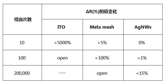 柔性触摸屏指的是触摸屏中的透明导电膜(sensor),是触摸屏的重要组成部分,它的特性决定了触摸屏是否能够弯曲折叠。目前市场上最主要的透明导电膜材料还是使用ITO导电膜,但ITO材料因其阻值高、易折断、不抗震、难搬运等缺点,难以在大尺寸触摸屏、柔性屏上应用。特别是在触控区成为曲面或是可挠式时,因为ITO属于金属陶瓷,其易脆性容易造成阻抗值急剧升高,阻抗稳定性较差。而且制备ITO所需的金属铟也日渐稀缺,ITO材料的替代品必将提升材料迭代的日程。