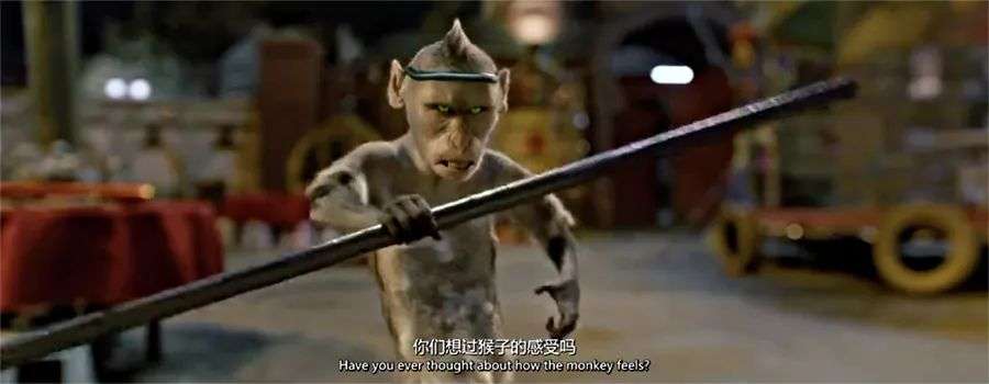 电影《疯狂的外星人》中,猕猴欢欢以外星人附体的方式完成了对人类的控诉:「你们这些暴力的垃圾,你们想过猴子的感受吗?」