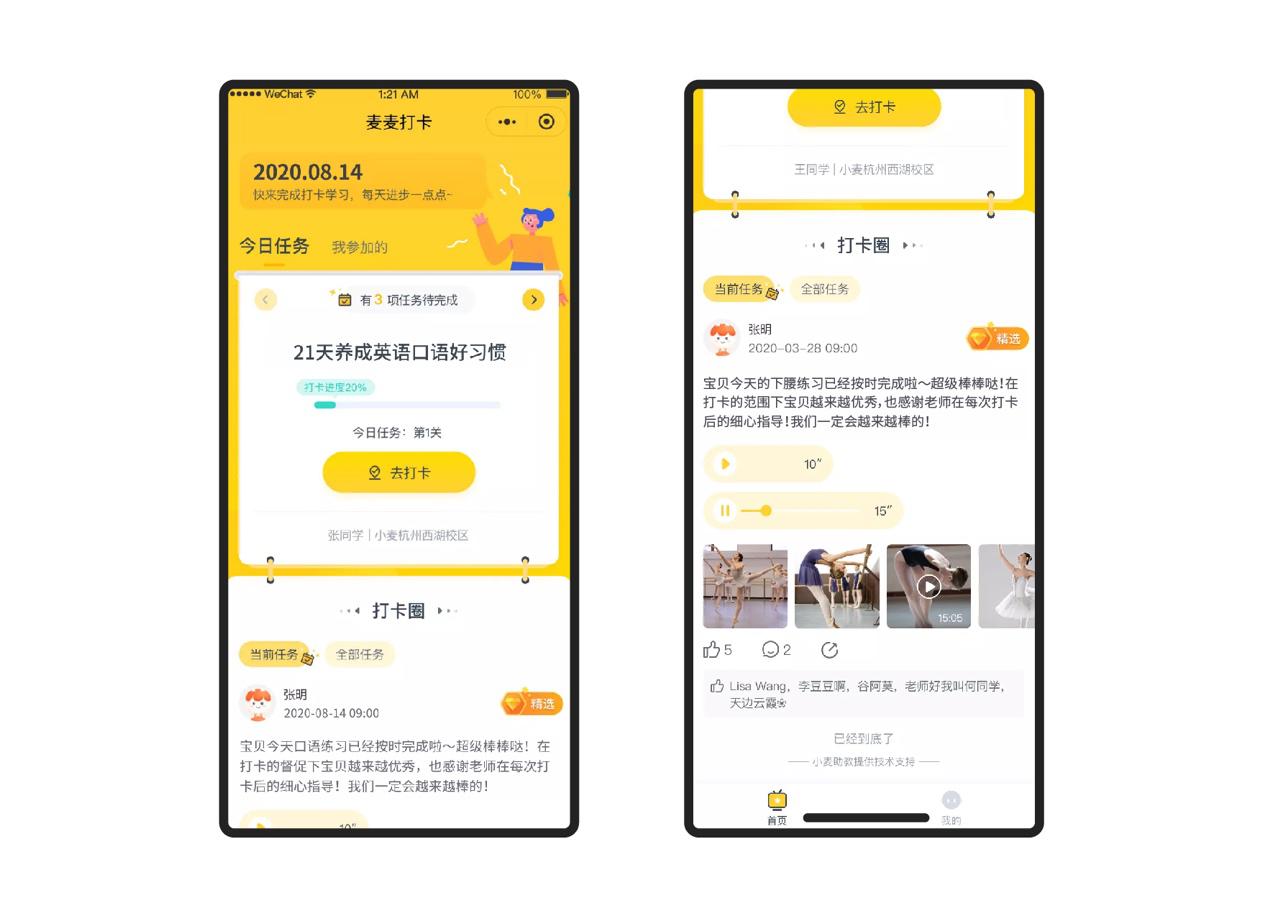 麦麦打卡设置了日历、闯关、答题模式等营销玩法,激发孩子学习兴趣,通过积分奖励+评论点赞的模式,提升孩子和家长的粘性,形成有效的口碑沉淀。久而久之,当家长看到孩子的点滴变化和成长,便会主动将孩子学习打卡的内容分享到微信朋友圈或者宝爸宝妈社群,形成了有效的传播裂变。