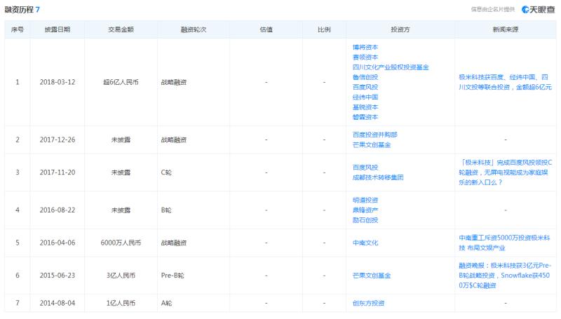 天眼查信息显示,极米科技在启动IPO之前进行了7轮融资,投资方不乏百度风投、芒果文创基金、经纬中国等知名投资方。然而,值得注意的是,极米科技最后一轮融资仍停留在2018年3月,距今已有近3年时间。