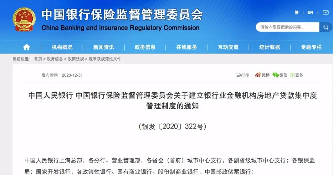 2020年的最后一天,监管祭出了大招,给商业银行的房地产贷款占比划定了“红线”,其中个人住房贷款余额占比最高不超过32.5%,规模越小的银行,上限要求越低。