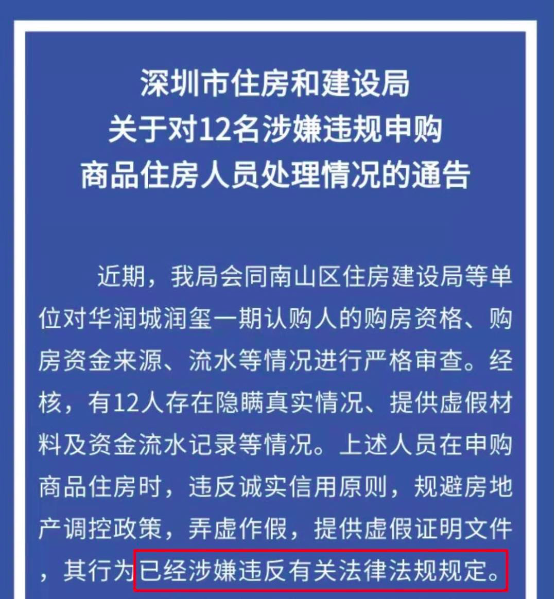 甚至到最后,还有可能更加细化到家庭和个人,比如深圳现在的玩法:资格造假、代持等违规行为上黑名单,3年内不能买房。