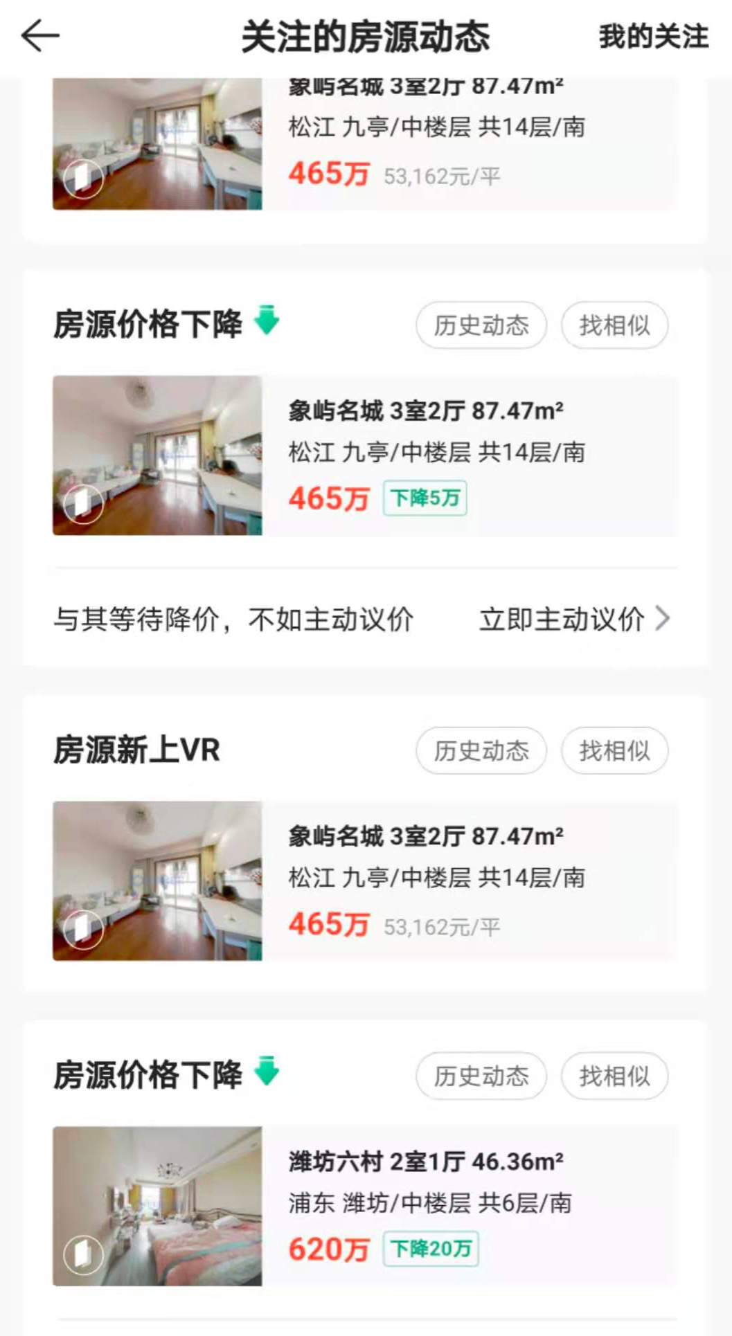 我关注的房源里,有一部分不满五的房源,现在已经进入了要么下架,要么降价的两难局面。