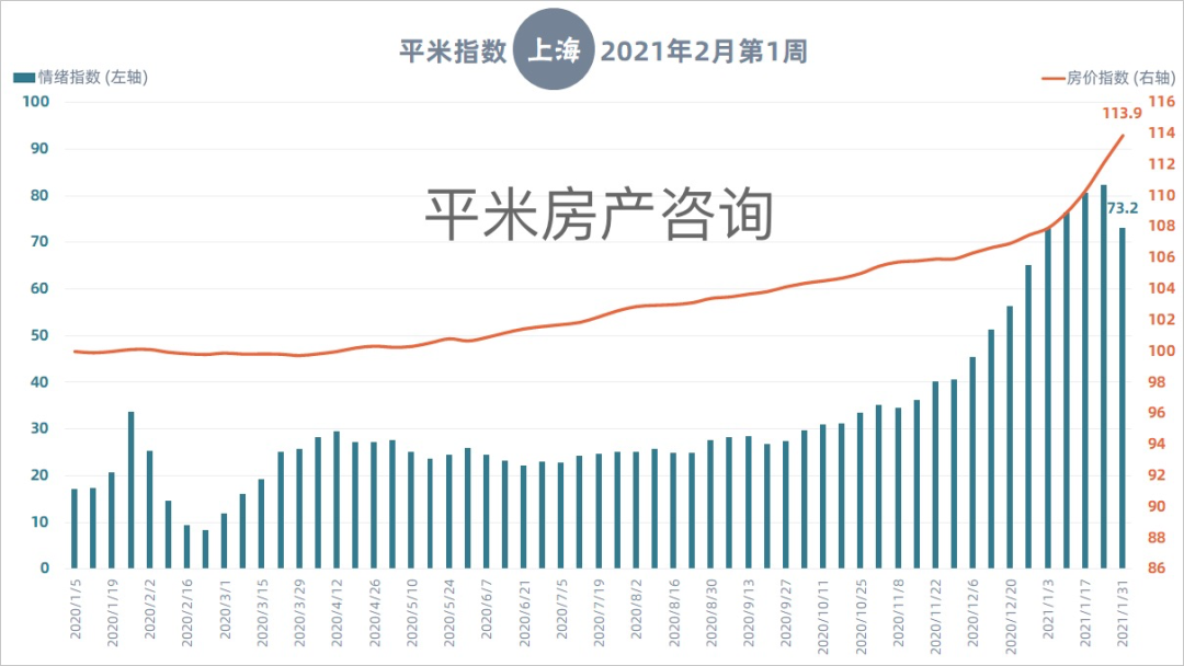 最近平米研究院在监测全市二手行情的情绪指数,情绪指数的来源,是来自向上调价的房东。