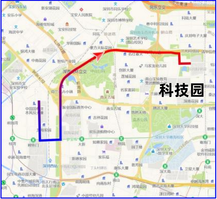 这条线路去往深圳高新中一道,附近就是南山科技园,这里聚集了腾讯、华为、中兴、大疆等一大批高科技企业。