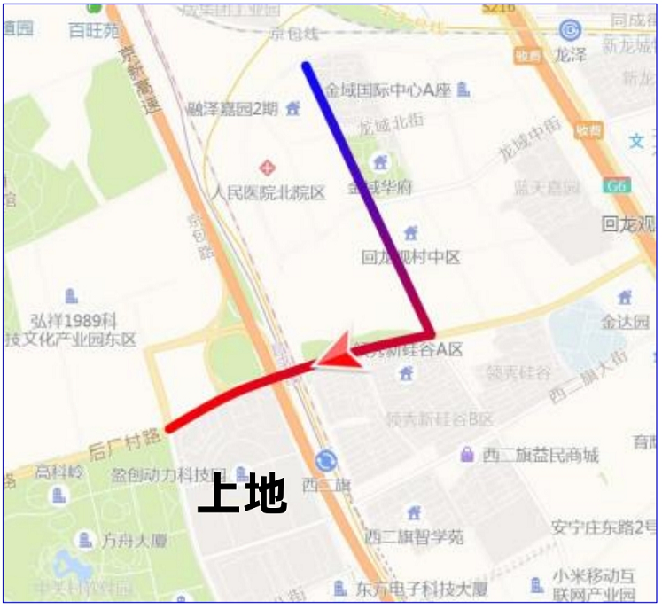 第一条线路:(北京) 龙域西一路↔西二旗北路↔后厂村路。