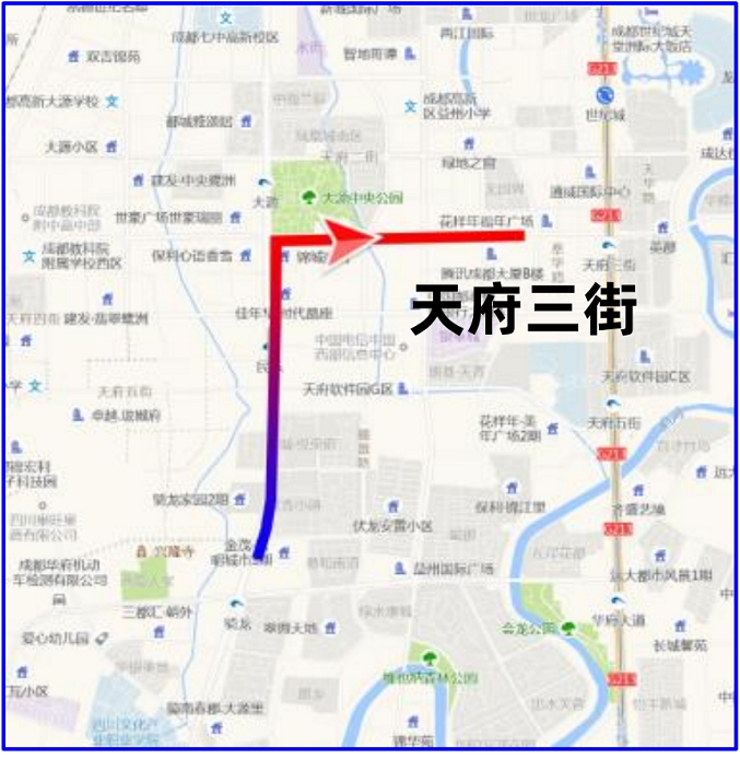 线路目的地天府三街附近也是科技公司的聚集地,区域内有阿里、腾讯、携程等科技公司。