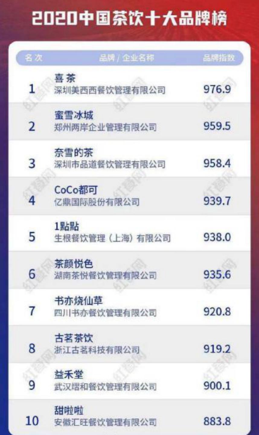 2020年中国茶饮十大品牌榜上,让喜茶没料到的是,紧随其后的不是老对手奈雪的茶,而是郑州餐饮巨头蜜雪冰城。这足以成为喜茶重视下沉市场的理由。