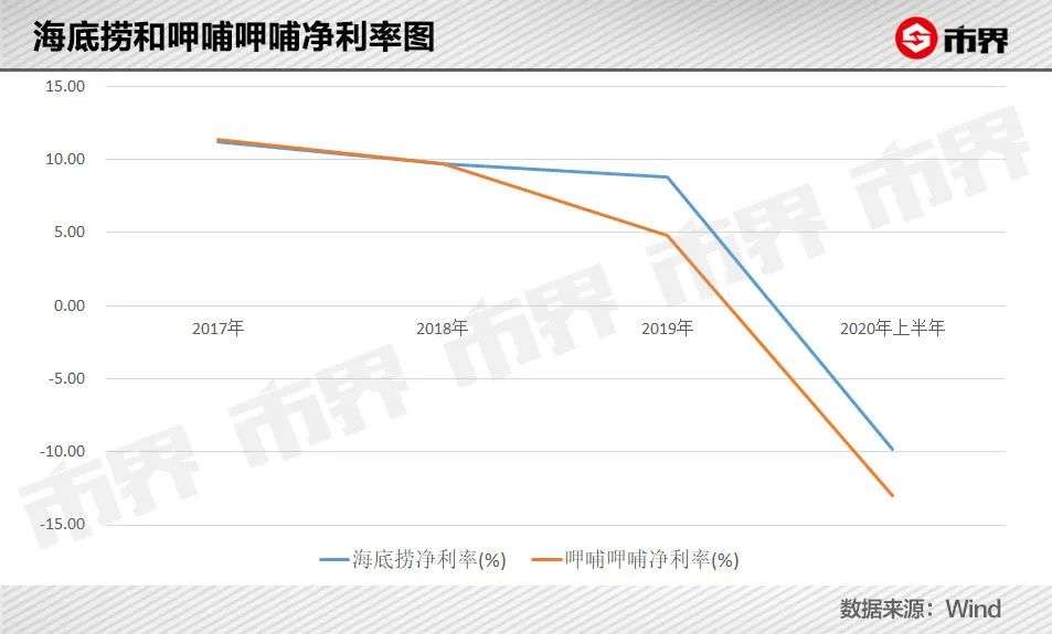 呷哺呷哺跟海底捞的财务表现也都不那么良好。2020年上半年,海底捞净利润为-9.65亿元,同比下降205.88%;呷哺呷哺净利润达-2.55亿元,同比减少255.41%。