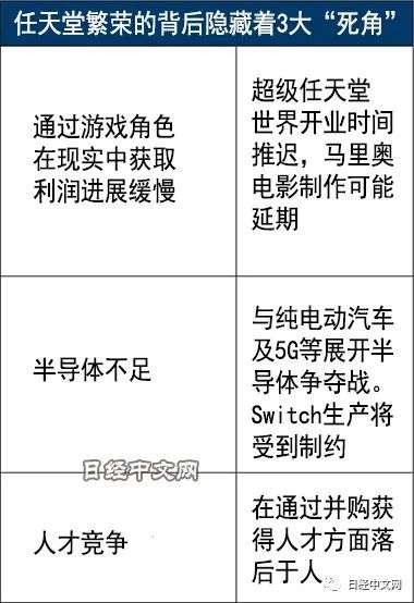 任天堂正因居家消费而处于业绩绝佳状态,但新冠疫情也悄然投下阴影。该公司的主力产品Nintendo Switch和游戏软件在年底商战中热销。但受疫情影响,作为新的收益来源而备受期待的业务(通过游戏角色在现实中获取利润)的前景并不明朗。除了半导体不足的情况加剧之外,任天堂在人才竞争中也落后于人。催生出居家需求的疫情已不能算是利好因素。