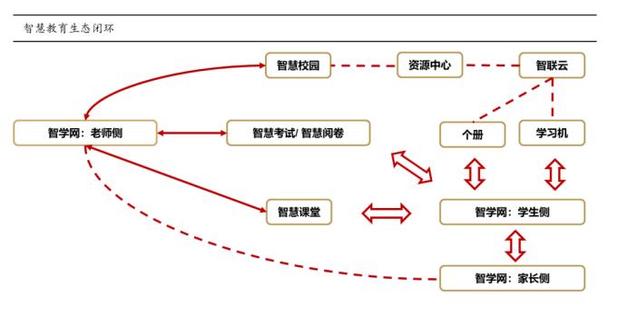 业务布局上,也分别从老师的教辅工具,到学校的智慧管理,乃至学生的个性化学习手册、学习机等各个方面齐头并进。