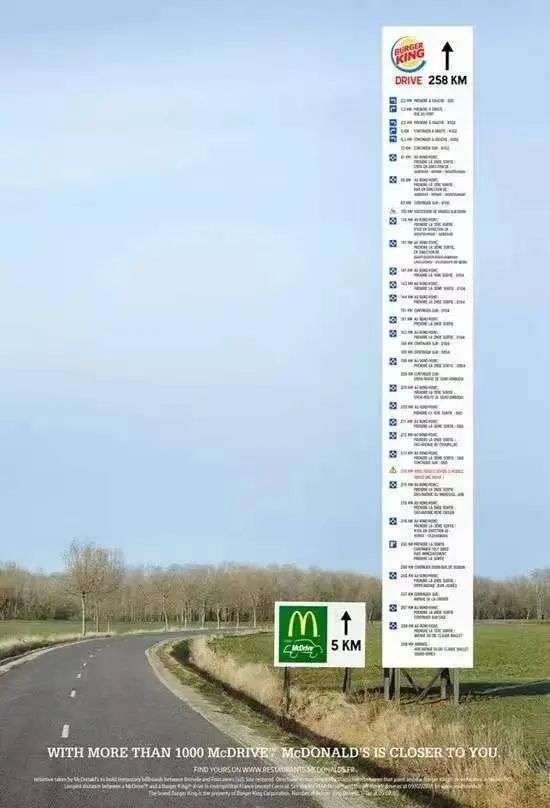所以,两家在打广告时,麦当劳会调侃汉堡王的店面数量。