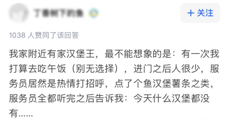 媒体报道,汉堡王店面存在店员态度不佳、顾客等候过久的现象。知乎“为什么汉堡王在中国市场火不起来?”的话题有4330万浏览量,许多人现身说法在汉堡王遭受的冷遇。