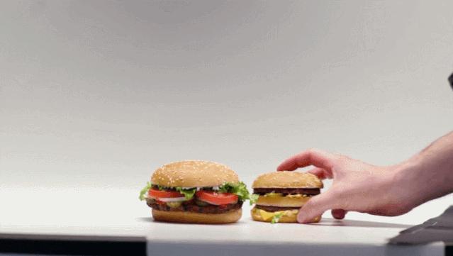 而汉堡王也不闲着,发挥自家王牌产品的优势,明里暗里贬低麦叔叔。