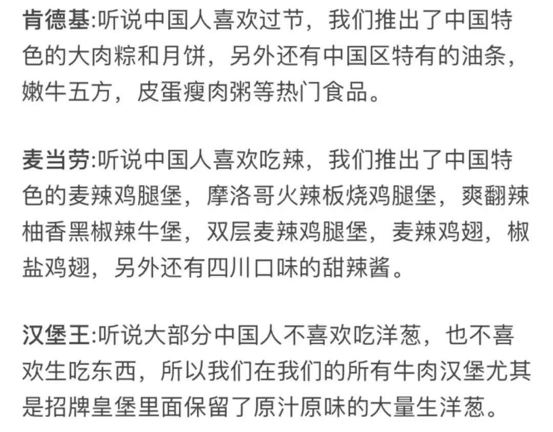 肯德基和麦当劳在入驻中国后,都做出了入乡随俗的调整。比如擅长制作中餐的K记,它主打的老北京鸡肉卷,和近两年火起来的大鸡腿饭,都是照顾到国人口味的产物。