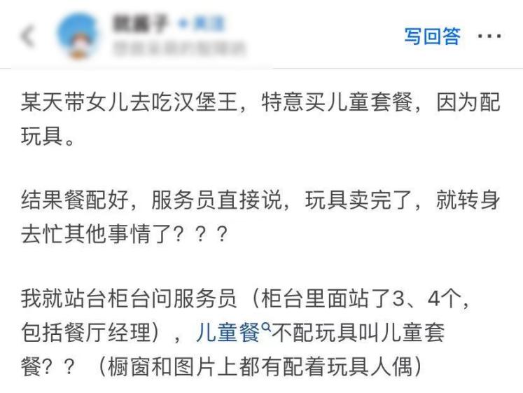 比如汉堡王的服务人员会习惯性把顾客晾到一边。点了儿童套餐却没有玩具,会员费没用完加钱补齐,服务员却说自己不会,取餐慢、桌子没人清理……这样的例子并不是一个两个。