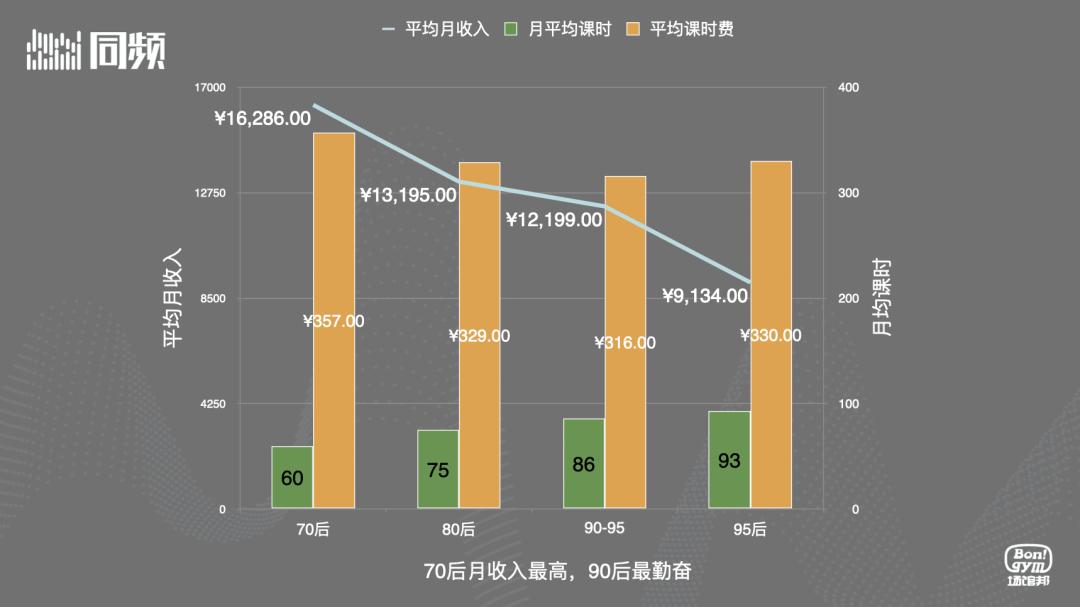 70后:月均60节课,平均课时费357元,平均月收入16286元;