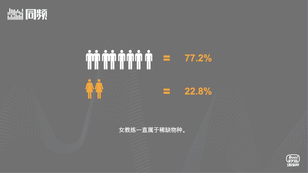 从性别来看,男女教练的收入水平日趋接近,所以虽然女教练稀少,但收入并没有与男同胞相差太多。