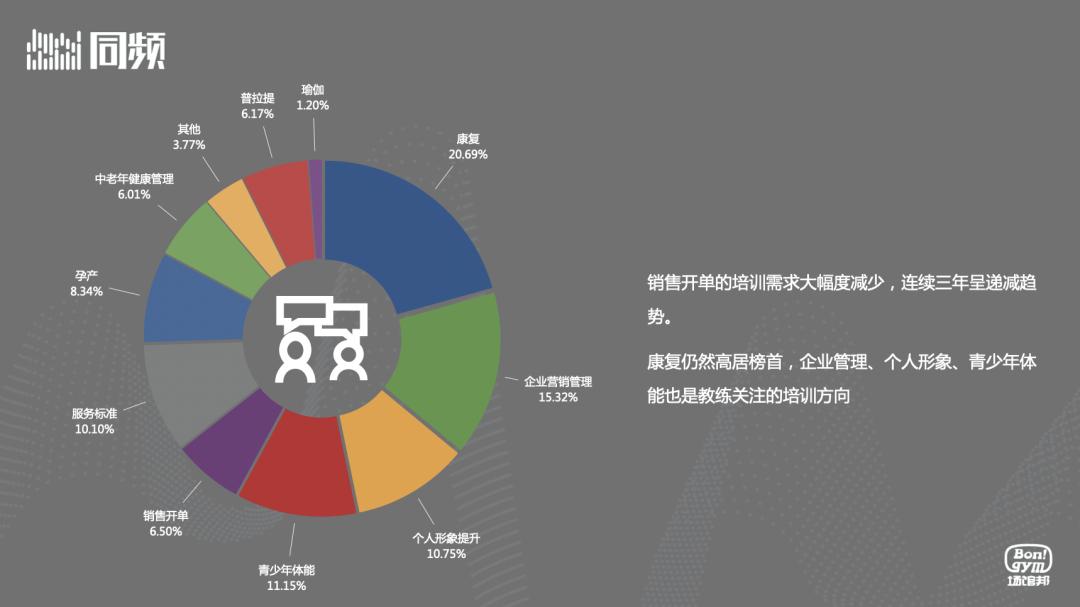 康复仍然高居榜首,企业管理、个人形象、青少年体能也是教练关注的培训方向。