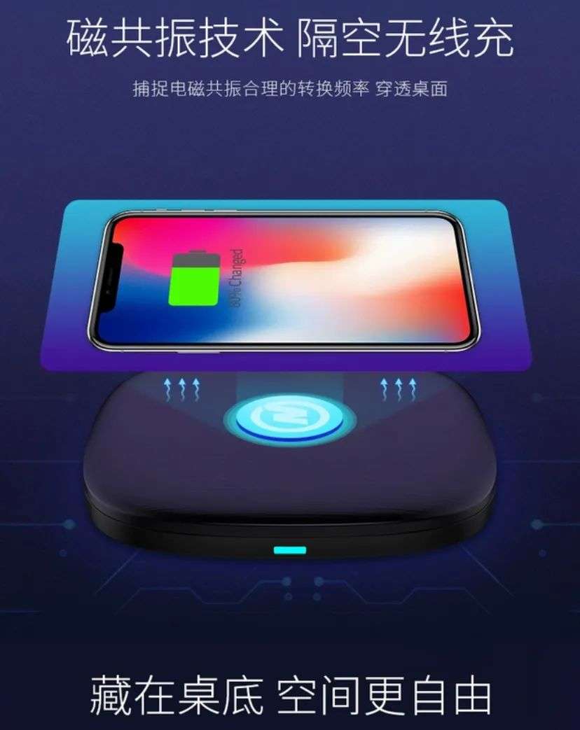 如今,市面上一些远距离无线充电器或安装于桌面下的隐藏式无线充电器,就是运用了磁共振技术。