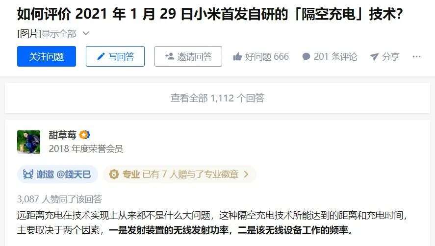 知乎网友“甜草莓”,身份标识为中国计算机学会(CCF)科学普及工作委员会主任助理,北京邮电大学博士,他就认为,小米隔空充电技术存在一些疑问。