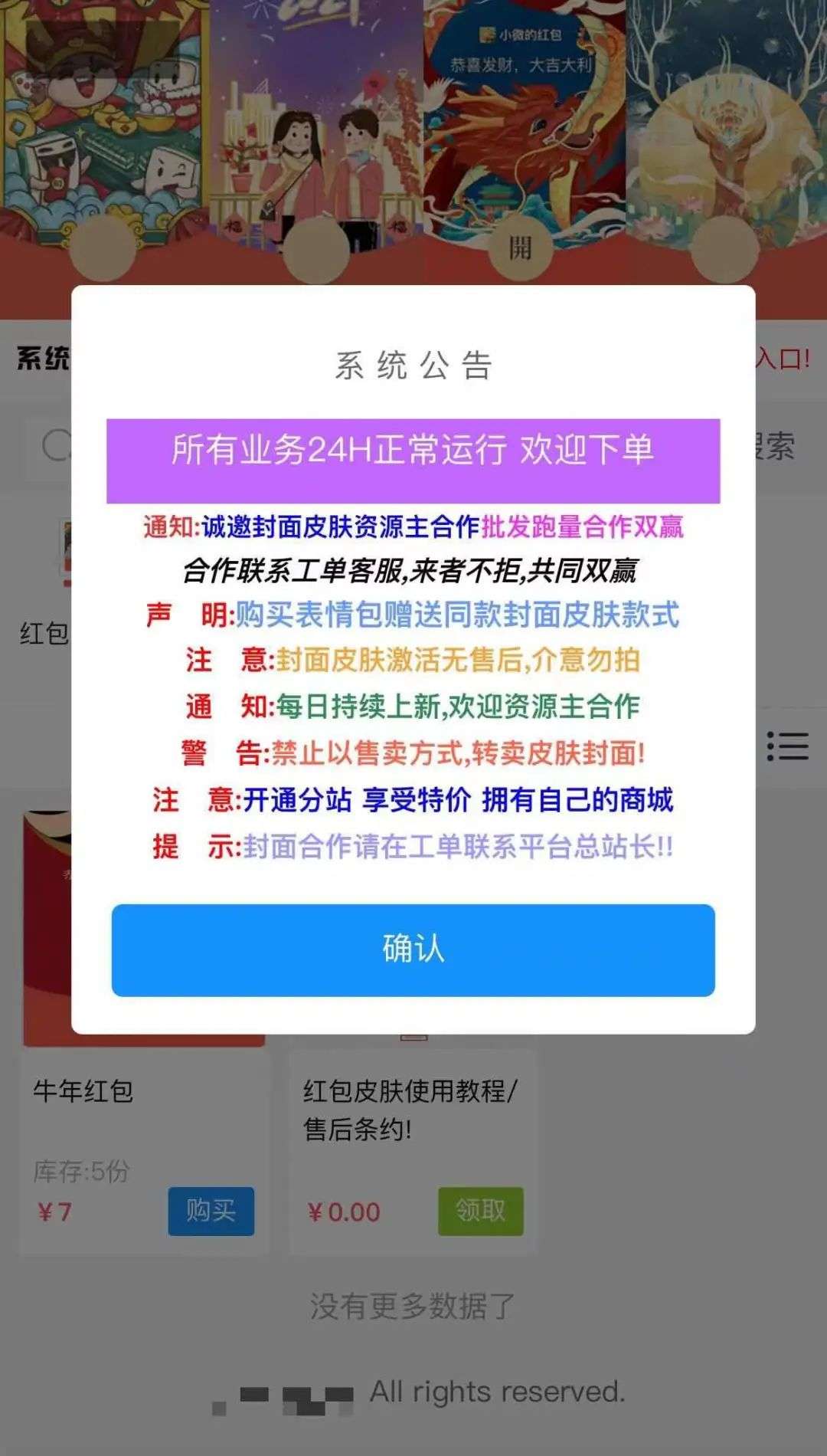 换句话说,二级分销商既不需要「交钱进群」,也不需要「垫资进货」,他们只要把商城里的图片下载下来,再加价卖给终端消费者就够了。当然,他们也要承担一定的「风险」:因同行举报或版权原因,已经生成的红包封面后可能会「失效」,此时终端买家第一个找上的肯定就是二级分销。