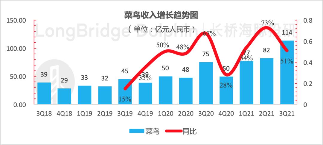 c.菜鸟收入表现持续不错,同比增长还在50%+以上,而且现金流如期转正。