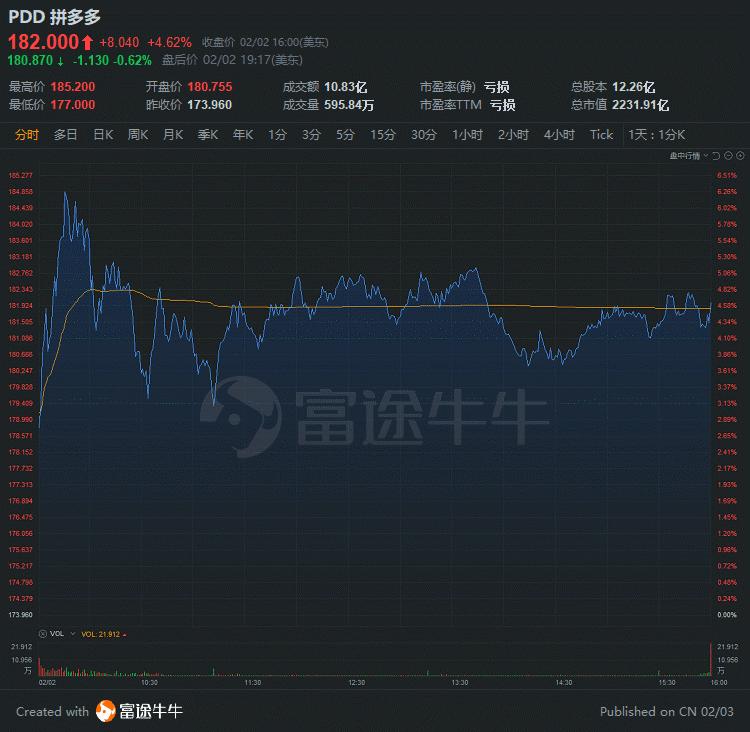 拼多多收涨4.62%,花旗上调目标价至210美元