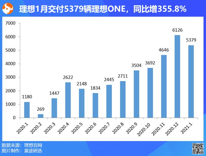 理想1月交付5379辆理想ONE,环比减少12.2%