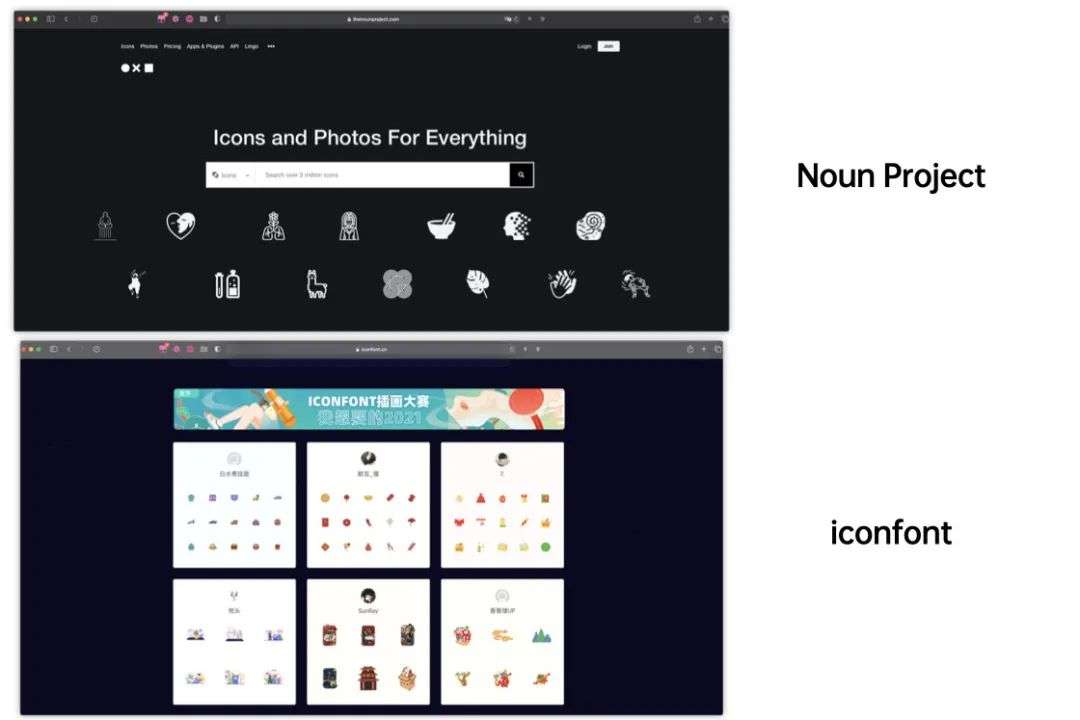 这个小细节是我在整理 Chrome 书签列表时想到的,书签列表中有两个矢量图的素材网站:Noun Project[3] 和 iconfont[4]。