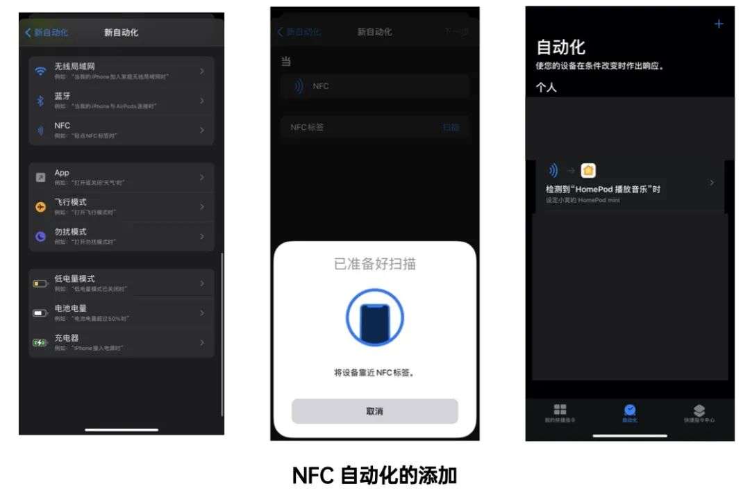 我是在今年某次大扫除时发现了许多废弃的卡片,其中有我在校园中用过的饭卡、其它城市的公交卡、商场的储值卡等。就在我准备把卡片扔掉时,我想到了 iOS 快捷指令内自动化中有一项为 NFC ,我打开此项动作,把卡片放在背部,发现竟能够识别成功,成功识别后能够设置接下来执行的指令。