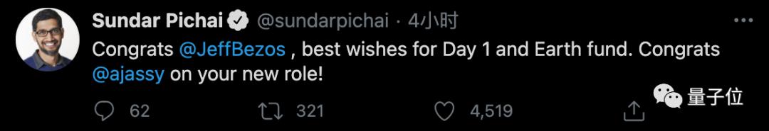 当然,这也是接班人之间的贺电。在亚马逊贝佐斯之前,微软和谷歌,也都完成了创始人让位、退居幕后的交接班。