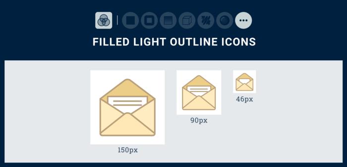 标准填充轮廓图标的深色轮廓可能会有点刺眼,而且会有“着色本”的感觉。用浅色轮廓图标可以让这些图标显得更柔和,更迎舒适。