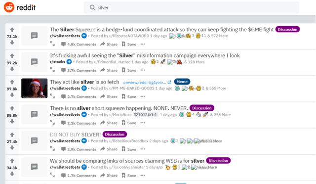 一部分人主张继续逼空白银,一些人则发帖称号召转战贵金属是对冲基金为缓解GME的逼空压力释放的烟雾弹。