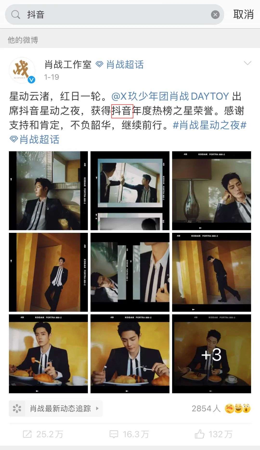 肖战工作室因发布微博里带有“抖音”被关小黑屋